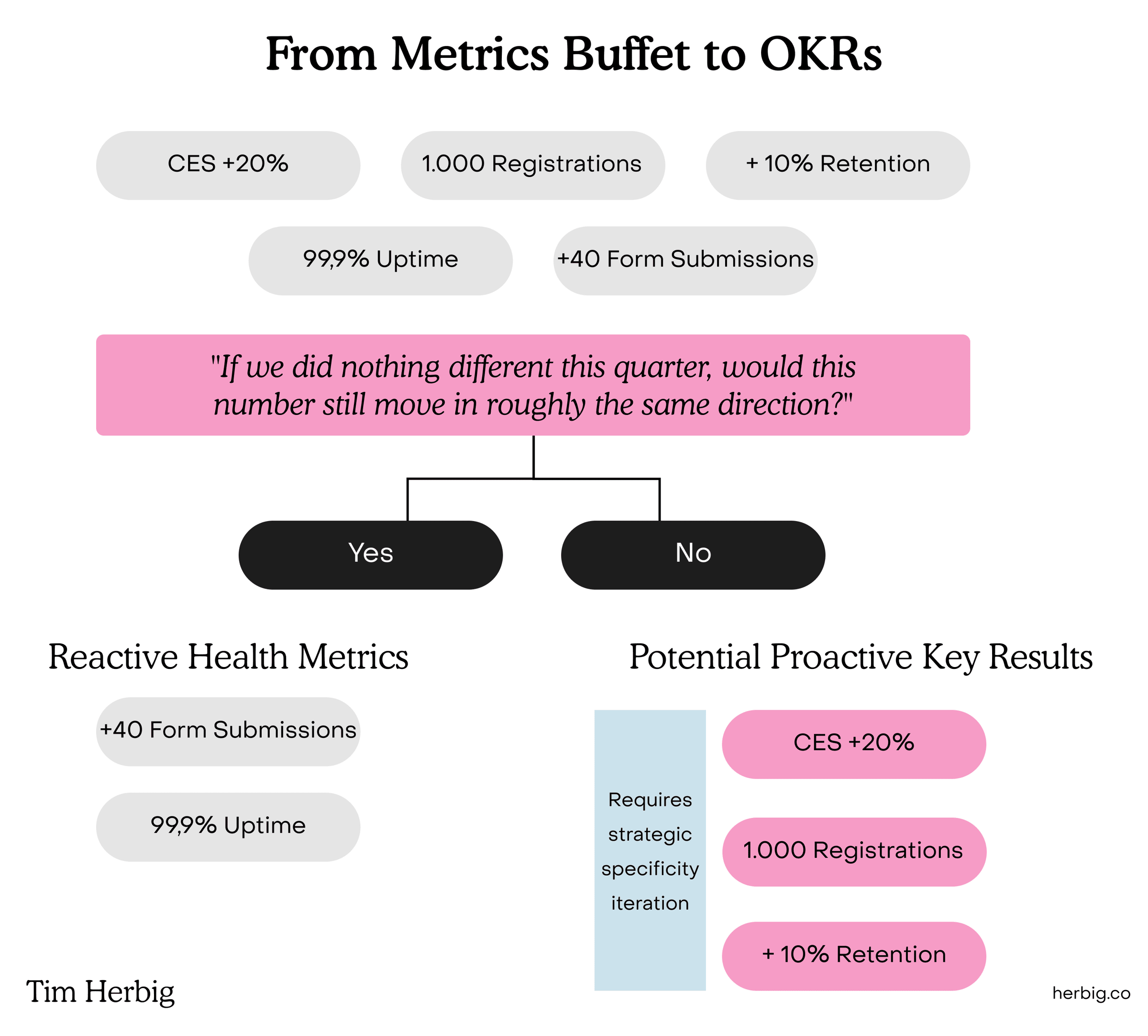 Product Practice #403 Linked Better Practices over Stacked Best Practices PUBLISHED Apr 9, 2026 READ ON HERBIG.CO Dear Reader, During my last webinar on Connect Strategy, Goals, and Discovery with Progress Wheel, I asked people which part of their work is most prone to Alibi Progress. Almost everyone who chimed in named OKRs. And that's because many OKR cycles start the same way for teams: Someone opens a spreadsheet, fills in three to five semi-random metrics, and picks a value that isn't...